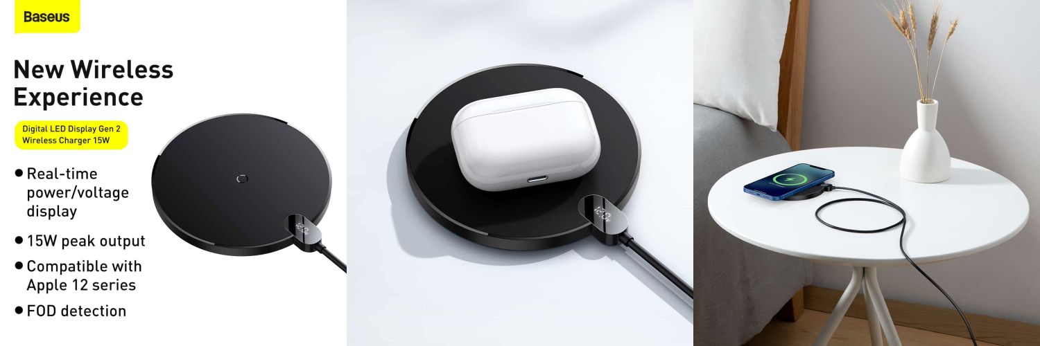 Baseus Digital LED Display GEN2 Wireless Charger 15W – Smart Fast Charging Pad | Buy at Deshibd.com