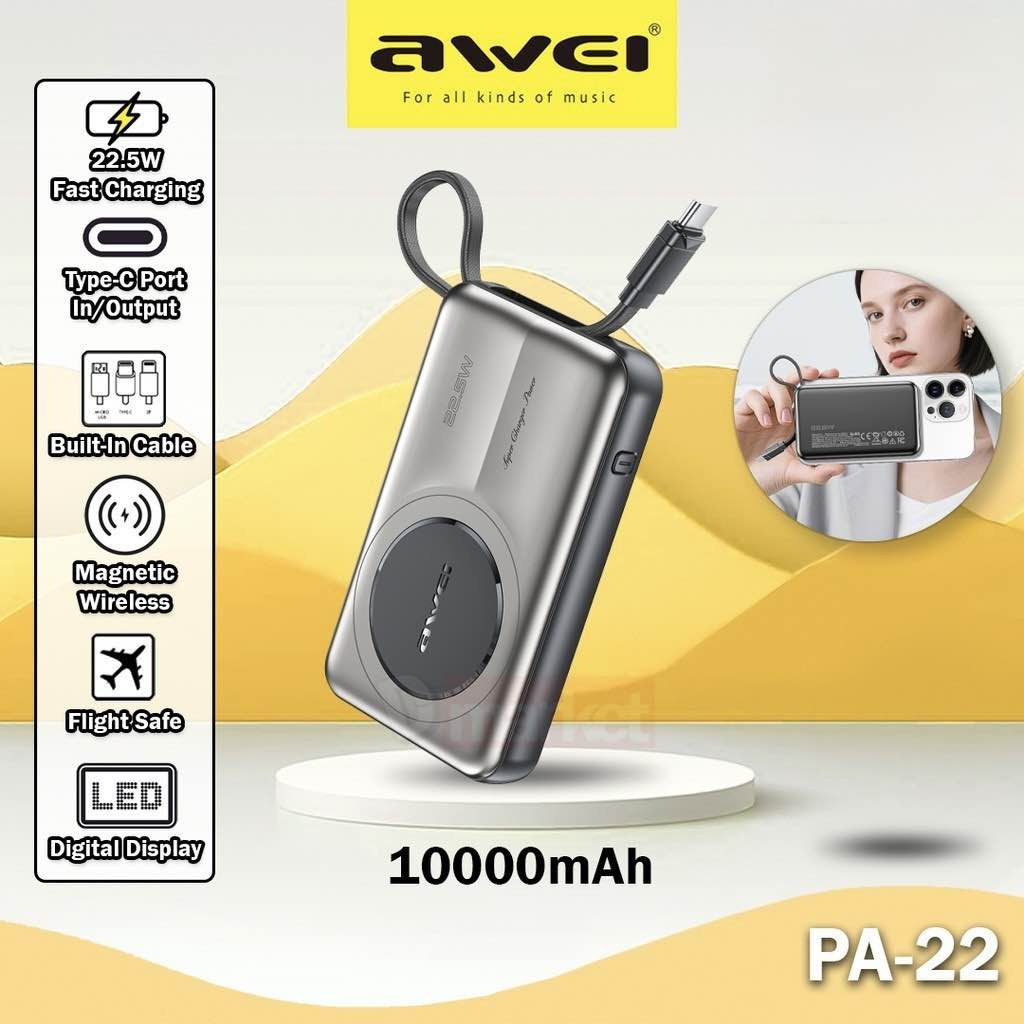Awei PA22 10000mAh 22.5W Wireless Power Bank with Built-in Type-C Cable Buy at Best Price in Bangladesh – Deshibd.com