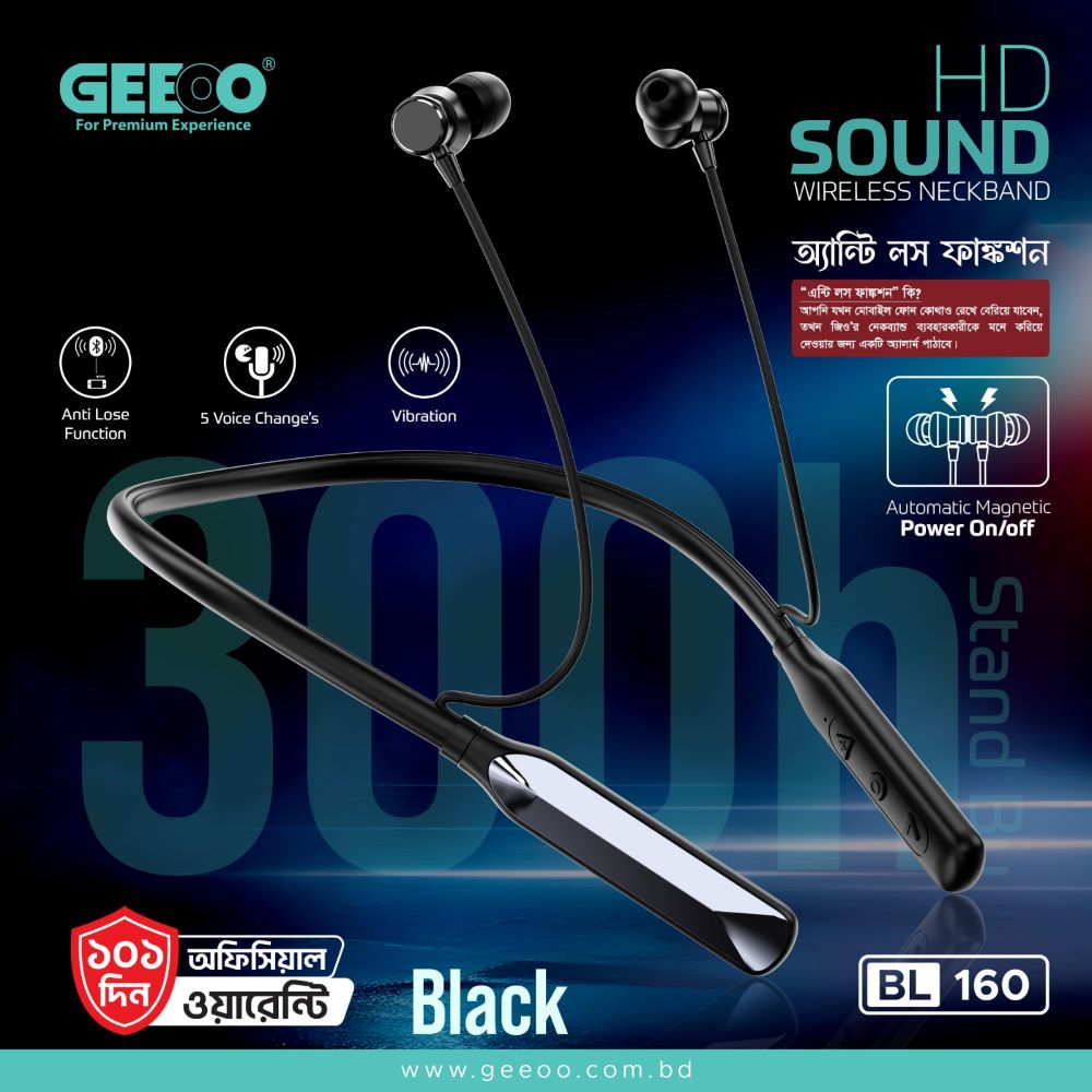 GEEOO BL160 Voice Changing Magnetic Neckband – HD Sound Wireless Bluetooth Earphones | Buy GEEOO BL160 Neckband at Best Price in Bangladesh – Deshibd.com