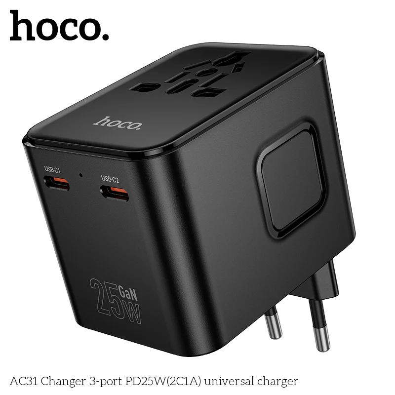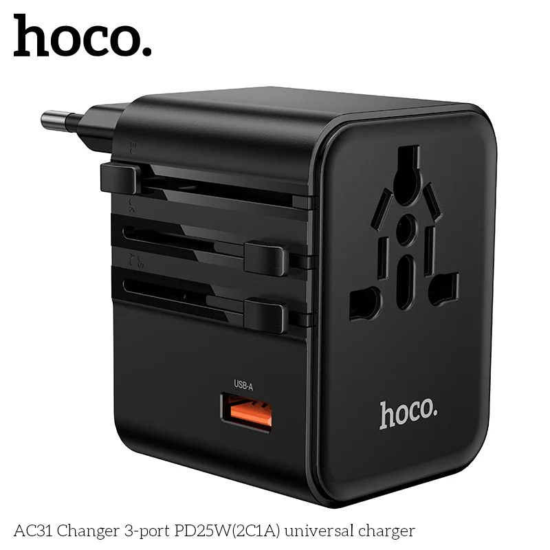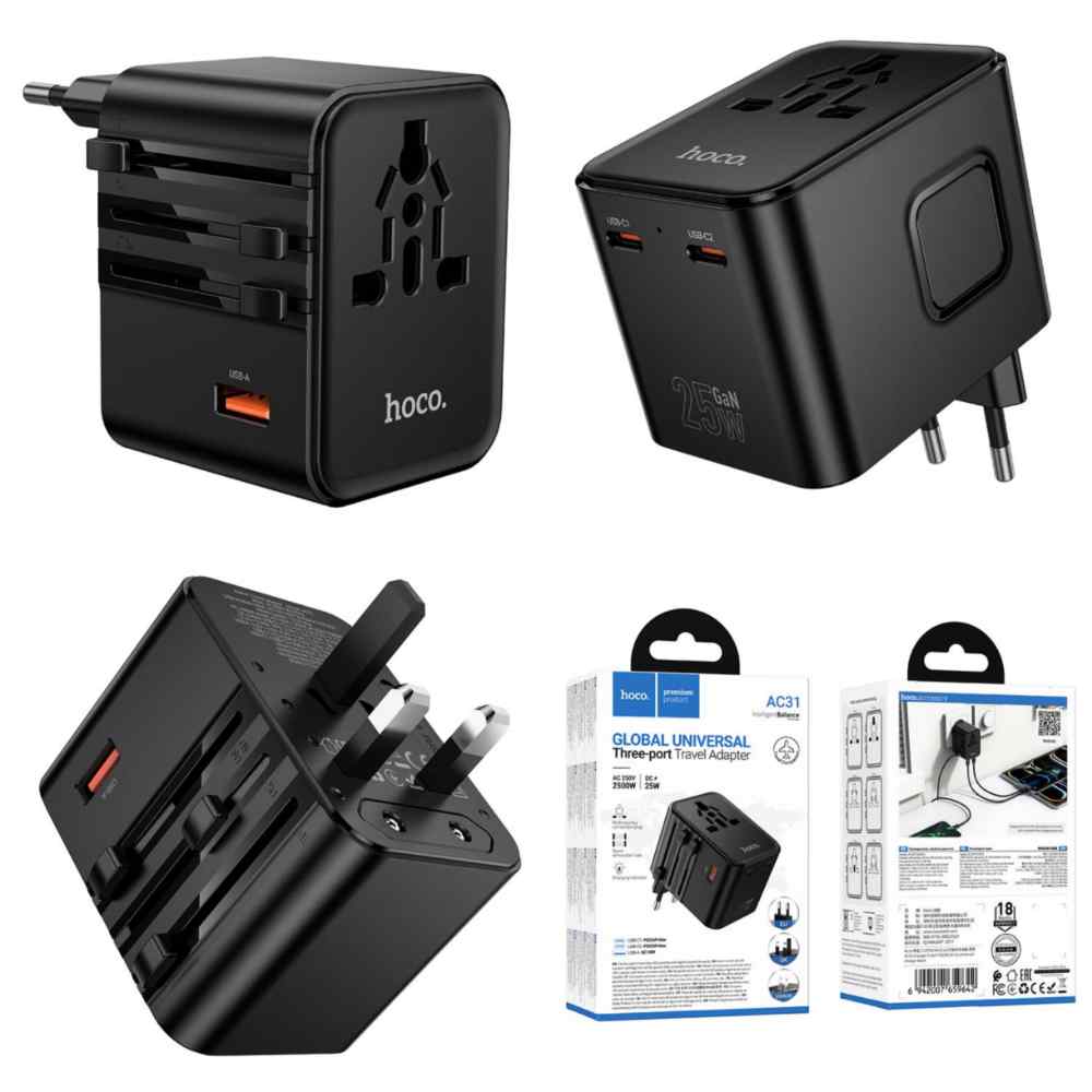 Hoco AC31 PD 25W Three-Port Universal Travel Adapter – Buy at Deshibd.com