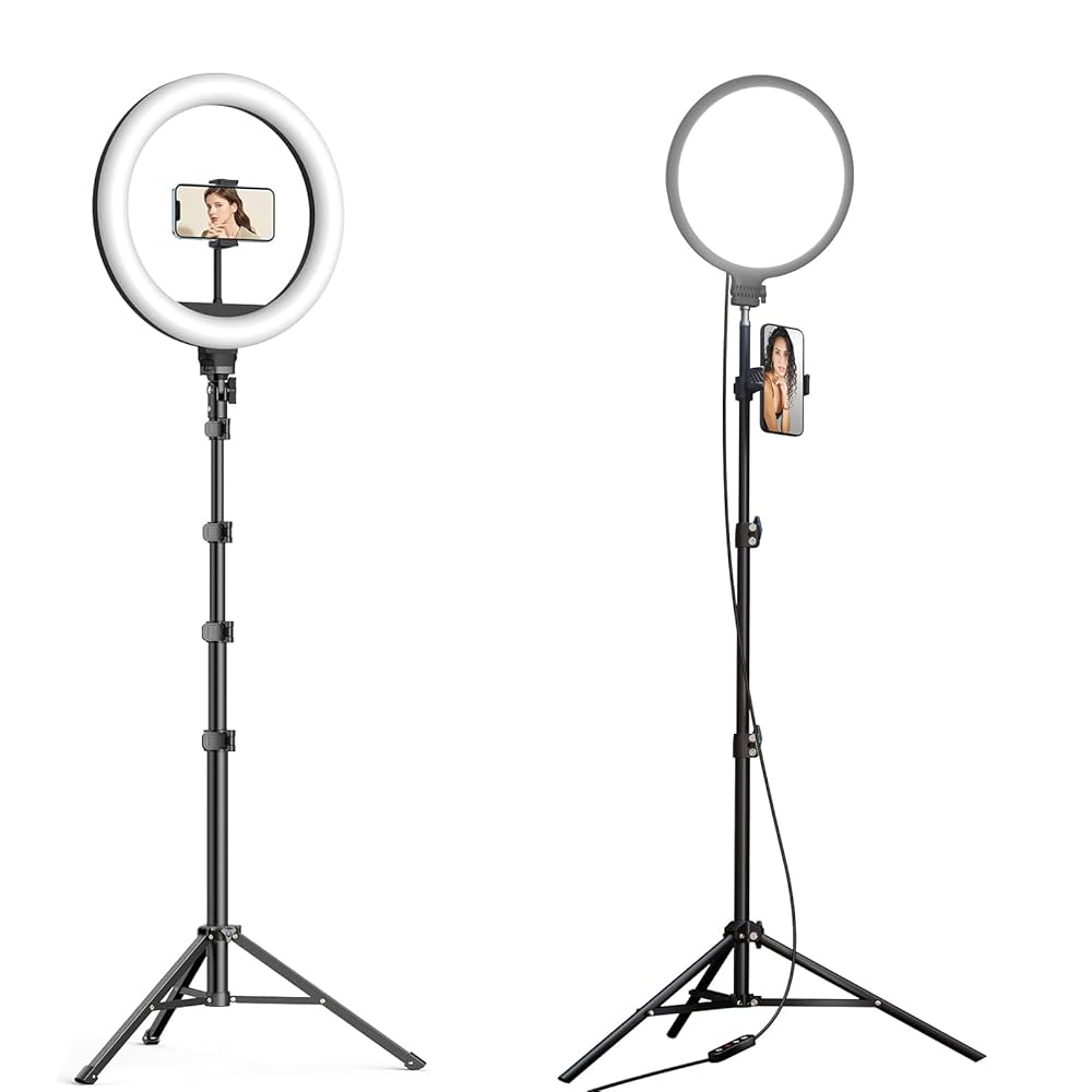 The 18-inch size provides a wide lighting coverage, while the adjustable brightness and color temperature let you customize the perfect light for any environment. Whether you’re shooting makeup tutorials, recording videos, or live streaming, the Fosoto ring light ensures a professional studio-like effect at home or on the go.