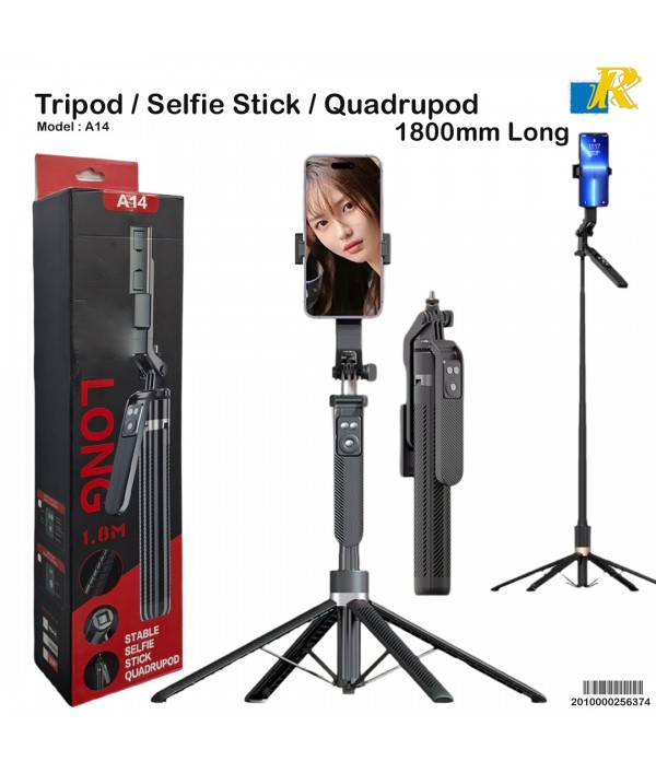 A14 Long Selfie Stick Quadrupod – 1.8m Adjustable Selfie Stick with Tripod | Buy at Deshibd.com