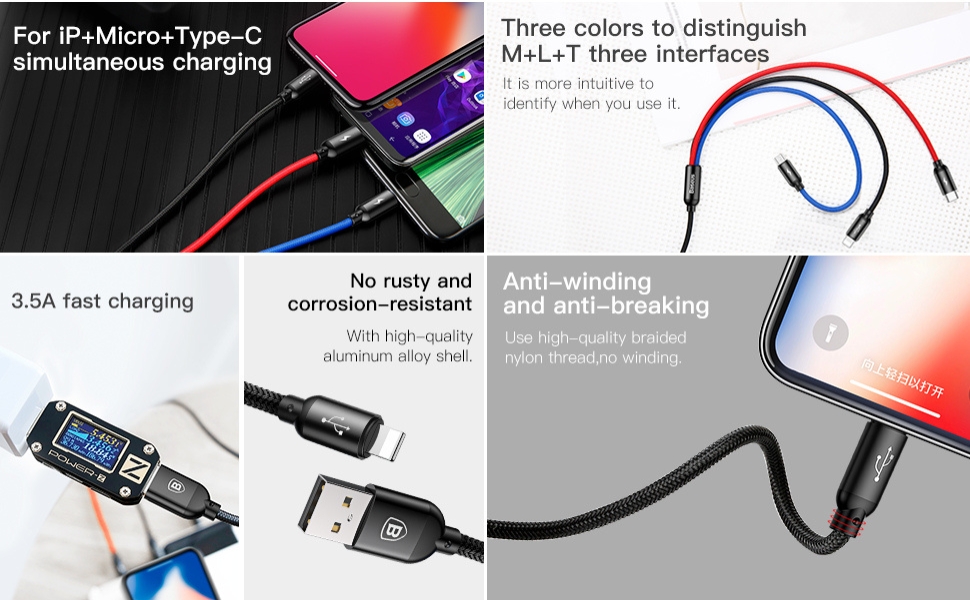 The Baseus Three Primary Colors 3-in-1 Cable is the perfect all-in-one charging solution for users who want convenience, durability, and compatibility in a single cable. Designed with USB to Lightning, Micro USB & Type-C connectors, this multi-functional cable lets you charge all your devices without carrying multiple wires.