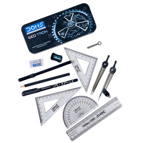 Whether you are solving geometry problems, creating technical sketches, or working on architectural projects, the DOMS Geotron Plus Box provides all the essential tools in one portable case, making it the perfect companion for school, college, or office.