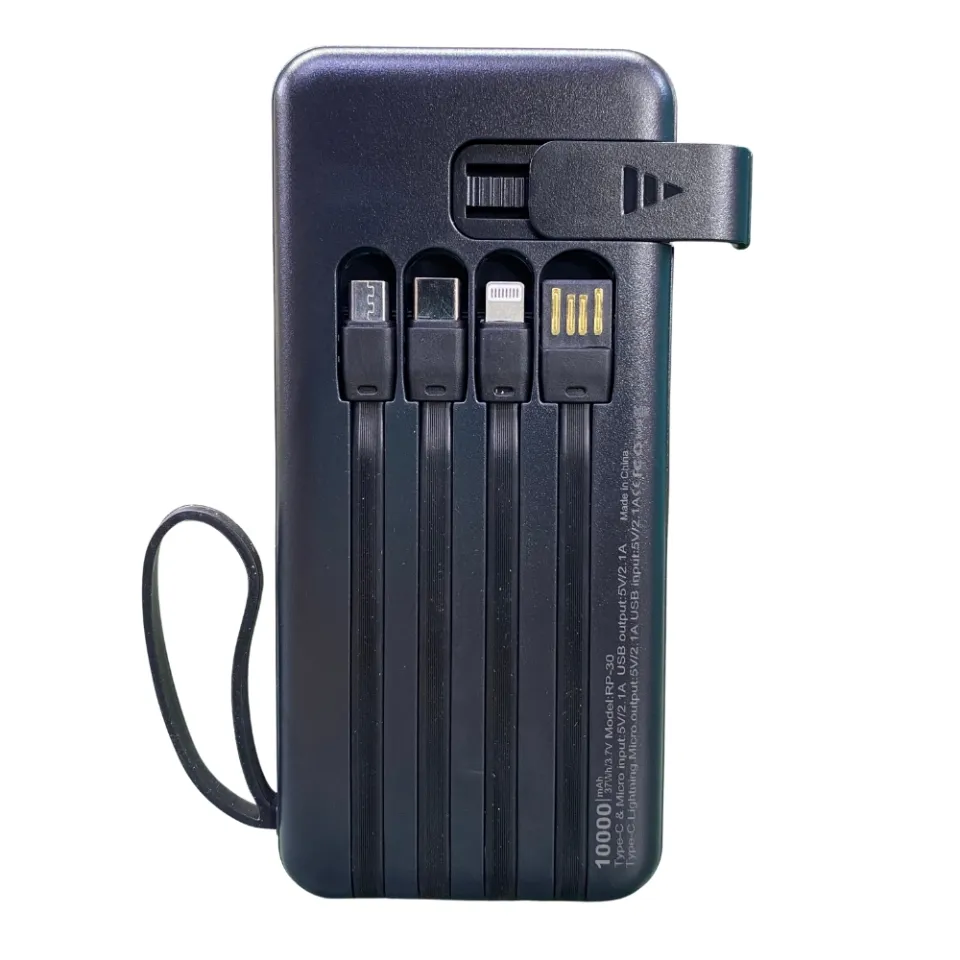 Stay powered up wherever you go with the REEOO RP30 10000mAh Power Bank, designed for convenience, versatility, and fast charging. Featuring four built-in cables (Type-C, Micro, iPhone, and Lightning), this all-in-one portable charger eliminates the hassle of carrying multiple wires. Its compact and lightweight design makes it perfect for travel, work, and everyday use. With fast 5V/2.4A output and multiple ports, the REEOO RP30 ensures that all your devices — from smartphones to tablets — stay charged and ready to perform. Whether you’re on a trip or stuck in a power outage, this power bank is your reliable backup companion.