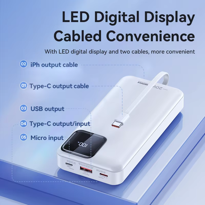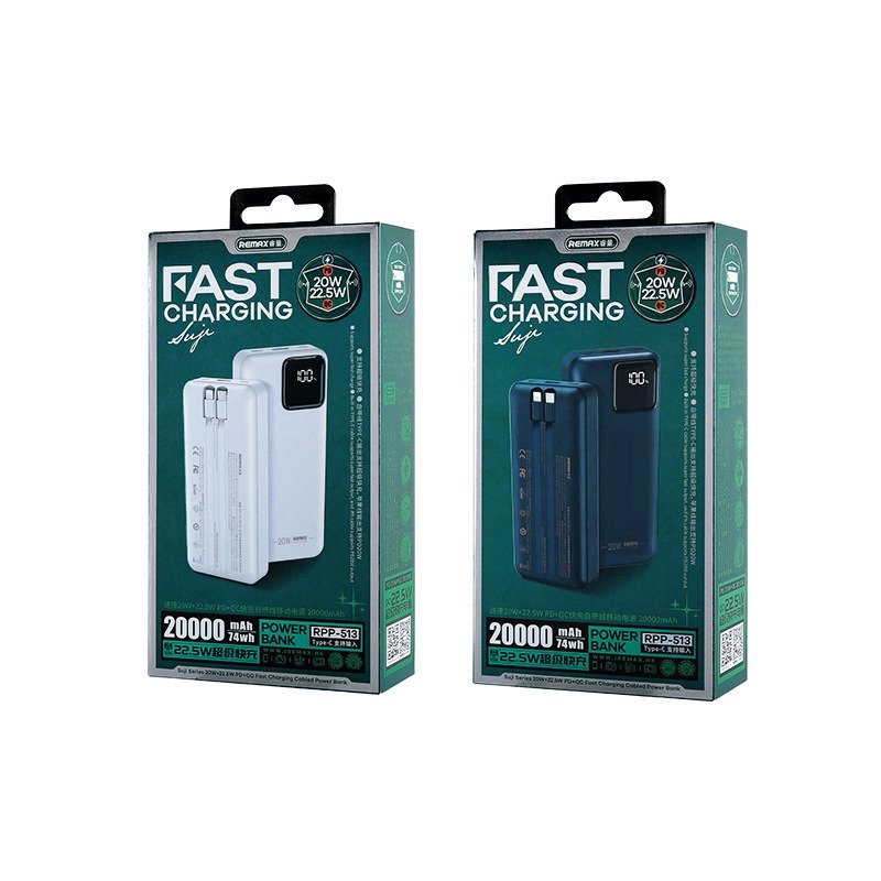 The Remax RPP-513 22.5W Fast Charging Power Bank combines high capacity, fast performance, and built-in cable convenience, making it the perfect portable charging solution. Order now from Deshibd.com and stay powered without delays.
